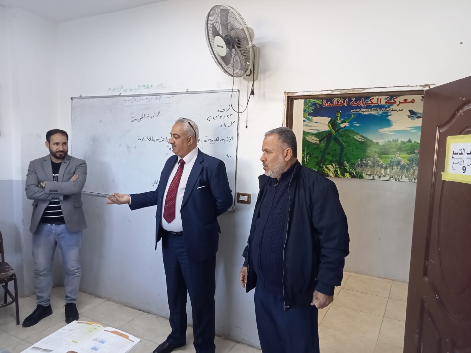 واستكمل جويعد زيارته بمتابعة سير العملية التعليمية والالتزام بالدوام المدرسي مشيرا إلى ضرورة متابعة الحضور والغياب مؤكدا على رصده يوميا وتطبيق أسس النجاح والرسوب.