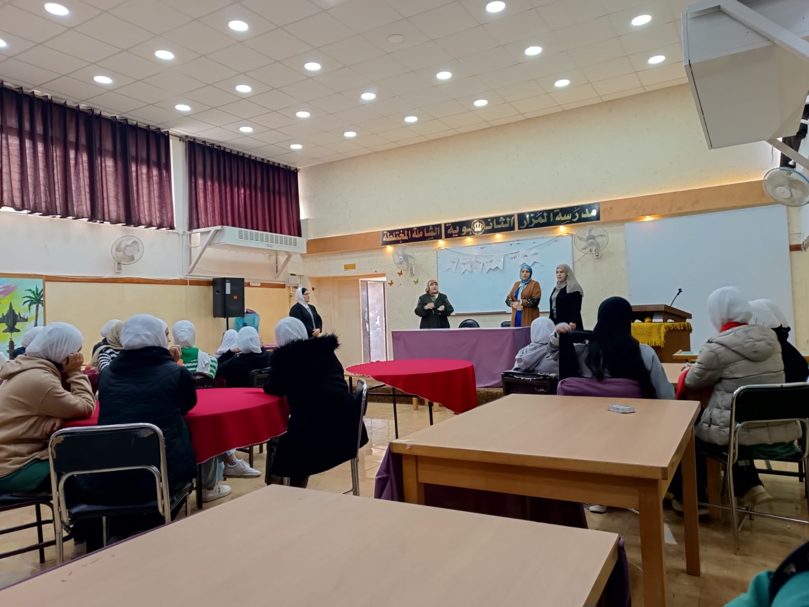 وفي كفر الماء، نظم مركز شباب وشابات كفر الماء المدمج زيارة تعريفية إلى مدرسة مريم بنت عمران بمشاركة 22 طالبة من الفئة العمرية 15–16 عاماً، للتعريف بمنصة البرامج التدريبية التي أطلقتها وزارة الشباب، وشرح آلية التسجيل والفئات المستهدفة، بما يسهم في توسيع آفاق الطالبات وتمكينهن في مجالات التعليم، والريادة، والتقنية، والرياضة.
