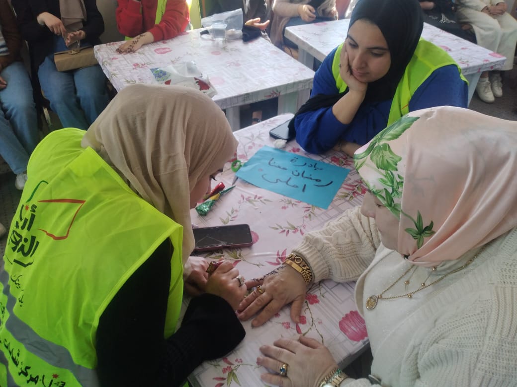 كما تضمنت الفعالية فقرة رسم الحناء، حيث قامت المشاركات بتصميم رسومات ومناظر باستخدام الحناء، مما أضفى أجواء رمضانية مميزة على النشاط.