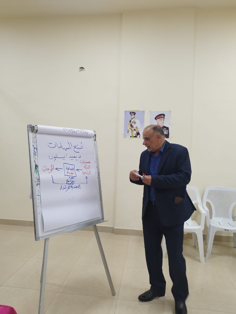 وضح خلاله الدكتور وصفي الشرعة، أن عملية صُنع السياسات تعني تحديد الأهداف العامة والخاصة، ووضع الخطط اللازمة لتحقيقها، مشيراً إلى أن السياسات العامة تُعد من مسؤولية الدولة وتشمل القرارات التي تؤثر على المجتمع ككل، مثل التعليم، والصحة، والاقتصاد.