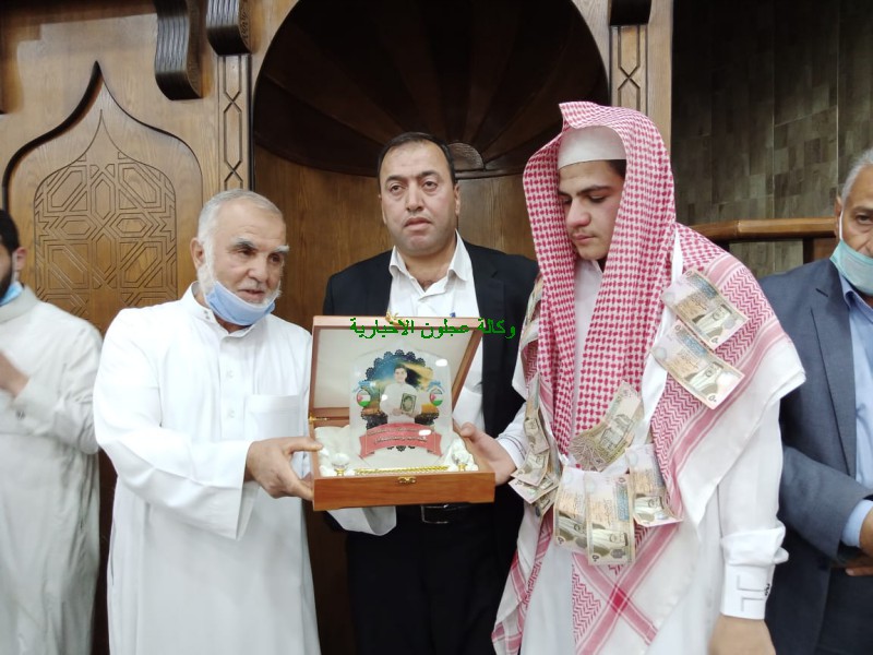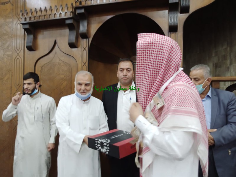 وفي نهاية الحفل الذي حضره أيضا عددا من أهالي المنطقة قام النائب الأسبق الدكتور محمد طعمه القضاه وإمام المسجد وعدد من وجهاء المنطقة بتكريم الحافظ لكتاب الله الشاب محمد أحمد يوسف الصمادي ، كما قام الحافظ لكتاب الله الشاب محمد الصمادي بقراءة آيات من القرأن الكريم والإمامة بالمصلين .