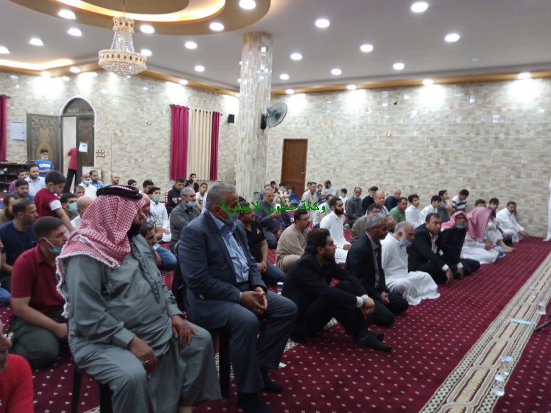 وإستهل الإحتفال بكلمة لإمام المسجد الشيخ يوسف الصمادي تناول فيها نشاطات وبرامج المسجد خلال شهر رمضان الكريم ، لافتا الى أنه ومن ضمن رسالة المسجد بالإهتمام بشباب المنطقة فقد وفقنا الله بتعلم وتعليم القرأن الكريم ، مؤكدا في الوقت نفسه أن حفظة كتاب الله شاركوا بجوائز ومسابقات على مستوى المملكة وحققوا أعلى النتائج والدرجات .