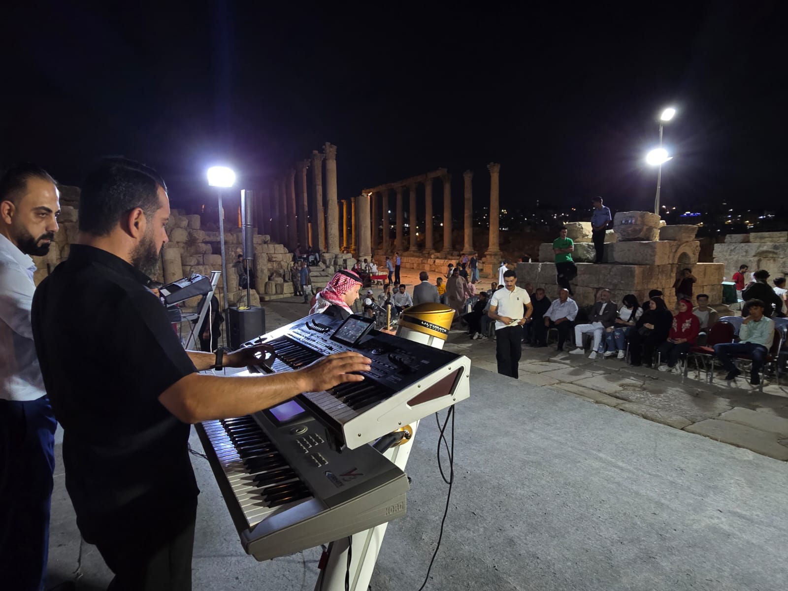 واختتمت الأمسية مع إبداعات الفنانين الشباب بلال الخطيب وأنس الشلول، حيث أضفت أغانيهما أجواءً مفعمة بالحيوية، تاركة صدى جميلاً بين أروقة جرش الأثرية.