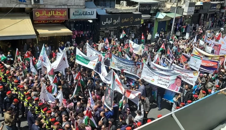 انطلقت مسيرة حاشدة بعد صلاة اليوم الجمعة، من المسجد الحسيني وسط البلد، تأكيدًا على الموقف الأردني الثابت ودعمًا لمواقف جلالة الملك عبد الله الثاني بشأن القضية الفلسطينية.