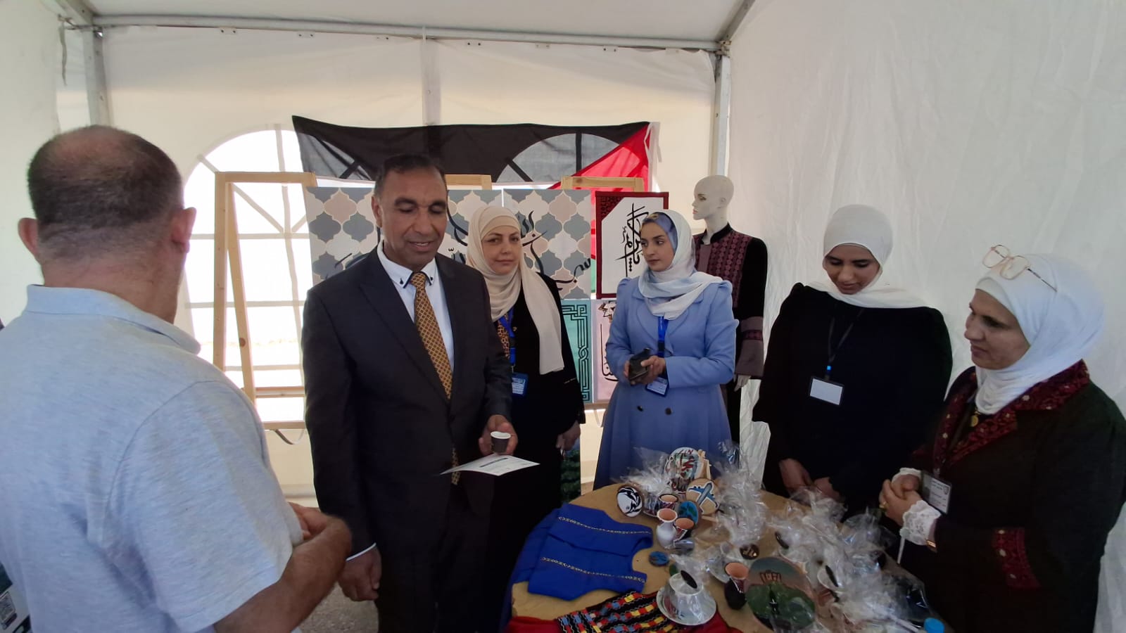 كما شارك تخصص تكنولوجيا الألبسة والتصميم، بإشراف المدرسة لجين الشرمان، بمجموعة فنية تضمنت لوحات للخط العربي وعددًا من الأزياء المعاد تدويرها التي أبرزت الحس الفني والابتكار في التصميم المستدام.