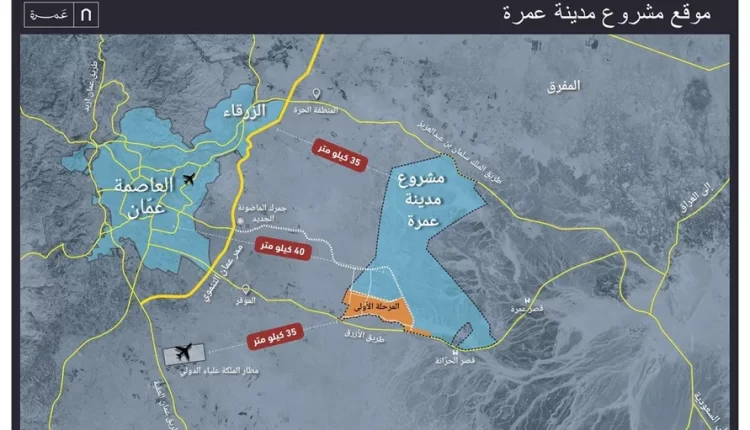 واطّلع رئيس الوزراء على مخطَّطات المشاريع التي ستنشأ خلال المرحلة الأولى في مشروع مدينة عمرة والتي ستُقام على مساحة 40 ألف دونم من أصل نصف مليون دونم، وستتولَّى الشَّركة الأردنيَّة لتطوير المدن والمرافق الحكوميَّة متابعة وتسهيل مراحل إنجازها، وسيبدأ العمل فيها مطلع العام المقبل وتمتدُّ حتى عام 2029م وسينجز بعضها خلال عامين.