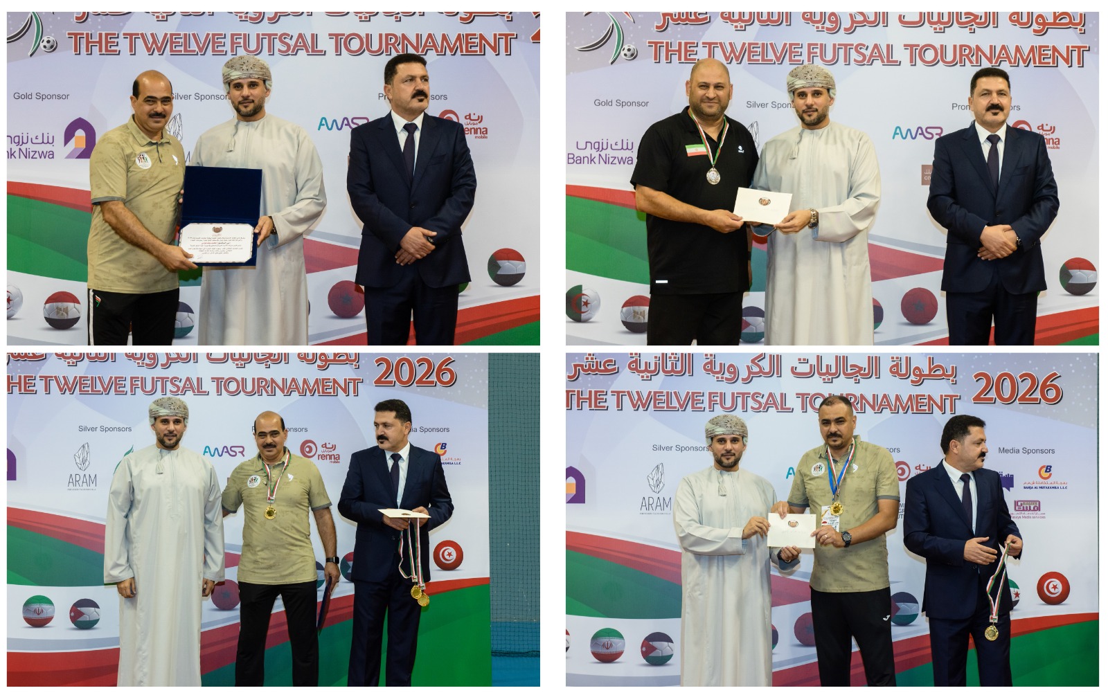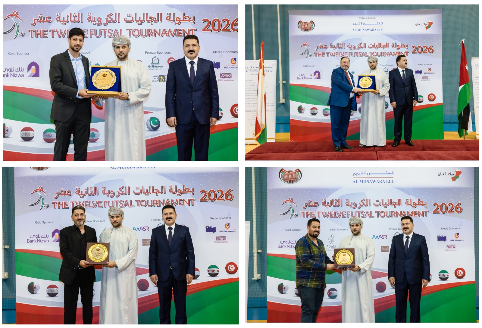 وشهد حفل الختام حضورًا رسميًا وجماهيريًا لافتًا، حيث عبّر الأستاذ عمار عبيدات، رئيس نادي الجالية الأردنية، في كلمته عن خالص شكره وتقديره لراعي الحفل، وللحضور الكريم، وكافة الجهات المختصة في سلطنة عُمان، والفرق المشاركة، والجهات الإعلامية، وأعضاء اللجنة المنظمة، والشركات الراعية، وكوادر التحكيم، وكافة الجهات الداعمة، مثمّنًا دورهم في إنجاح هذه النسخة من البطولة.