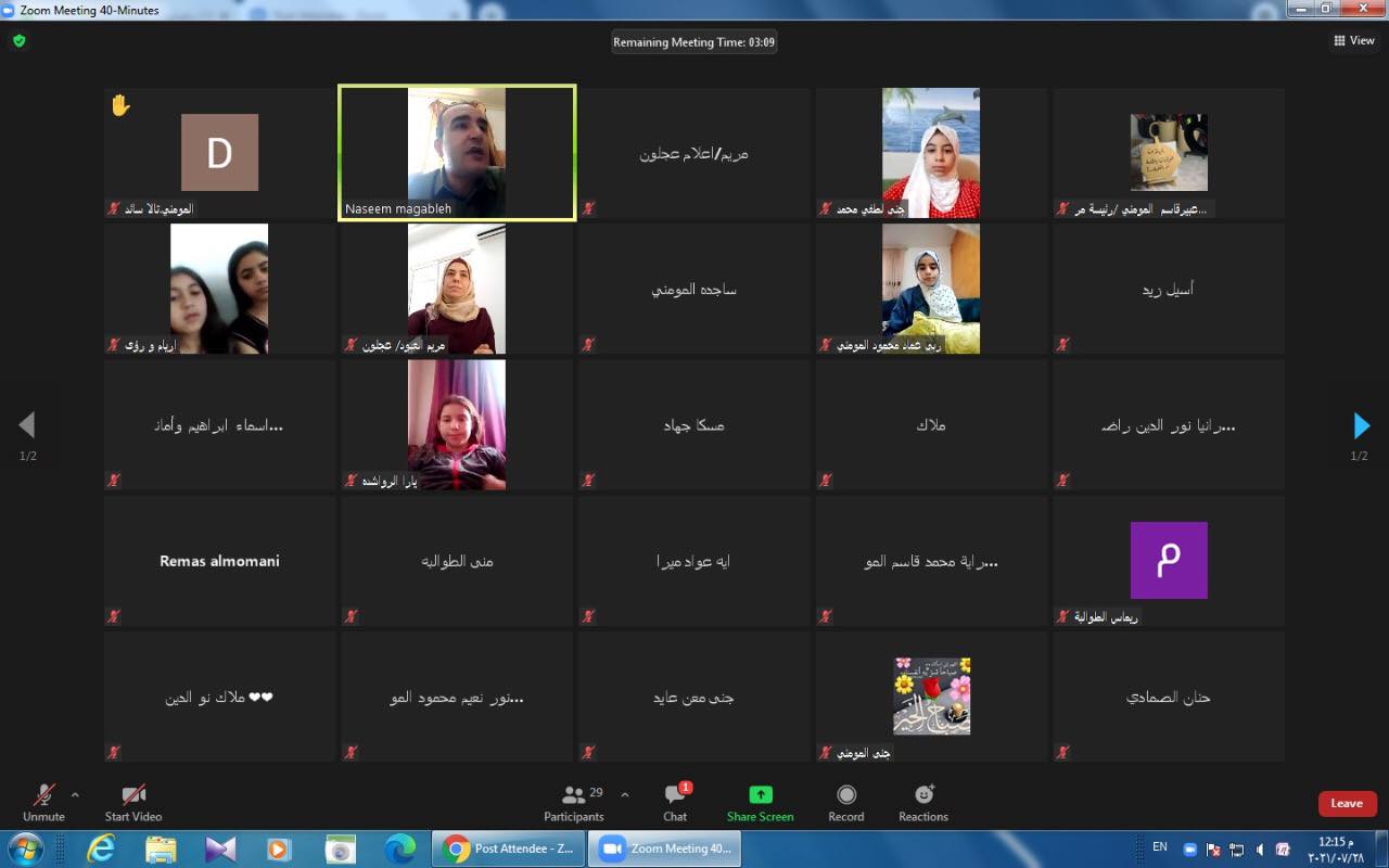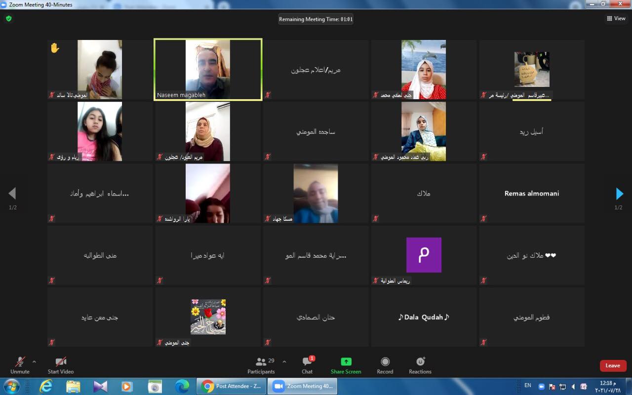 نفذت مديرية شباب محافظة عجلون عبر وسائل الاتصال المرئي في مركز شابات صخرة معسكر الأمن والسلامة الوطنية للفئة العمرية 15_17 سنة ،