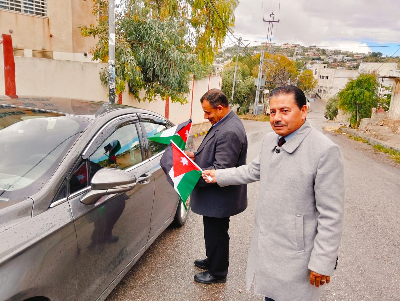 من جهة أخرى قام رئيس واعضاء المنتدى والجمعية بتوزيع الاعلام الأردنية على المحلات وطلاب المدارس،والمارة في منطقة حلاوة.