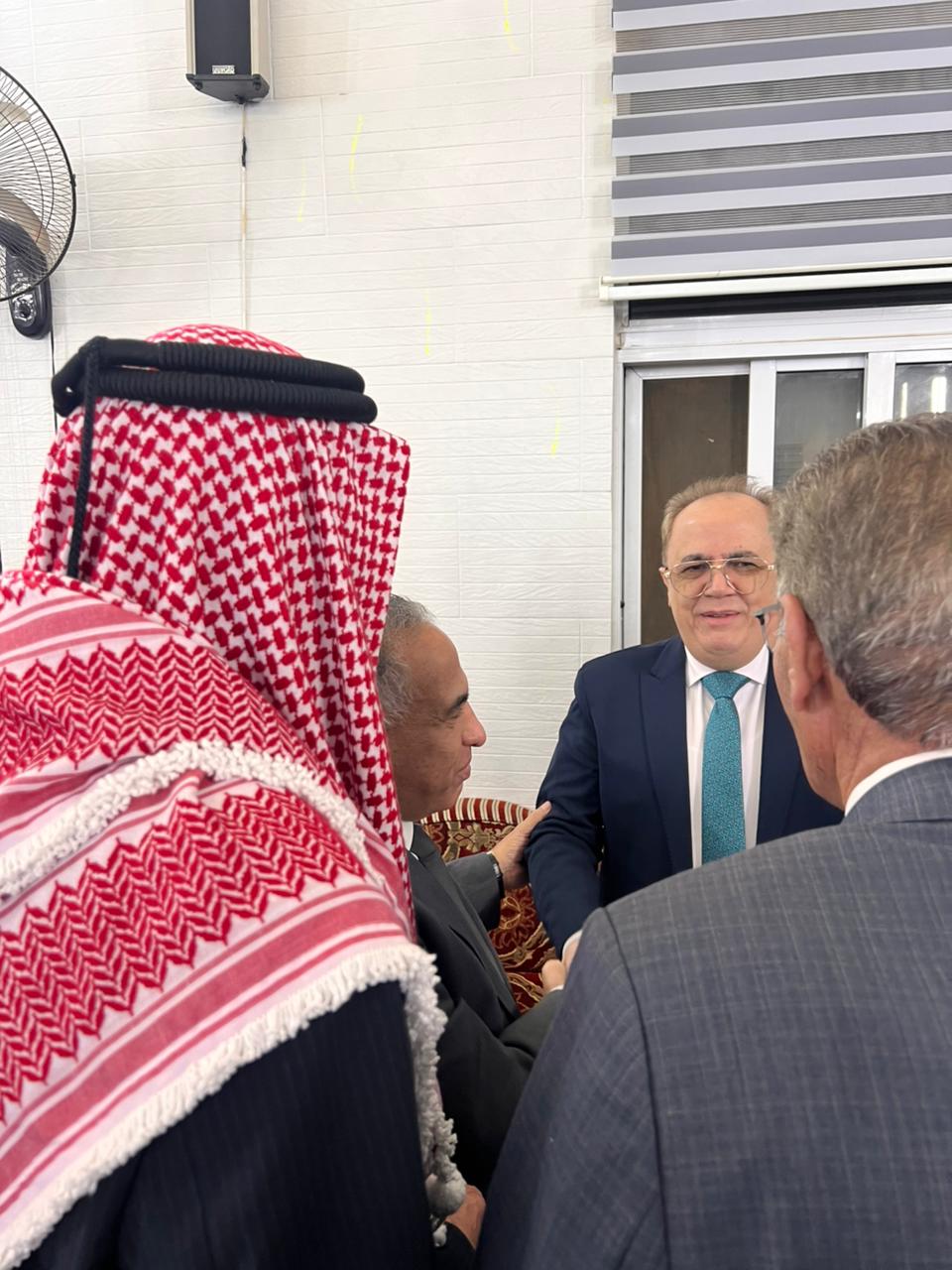 مندوباً عن فخامة الرئيس السوري أحمد الشرع قدم وزير التعليم العالي والبحث العلمي في الجمهورية العربية السورية الأستاذ الدكتور مروان الحلبي واجب العزاء بوفاة المرحوم سلمان القضاة والد السفير الأردني في دمشق الدكتور سفيان القضاة.