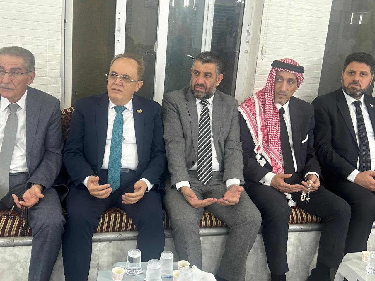 ونقل الحلبي خلال زيارته ديوان عشيرة القضاة في بلدة عين جنا بمحافظة عجلون تعازي ومواساة الرئيس السوري والحكومة السورية لعشيرة القضاة وللمملكة الأردنية الهاشمية بوفاة الفقيد .