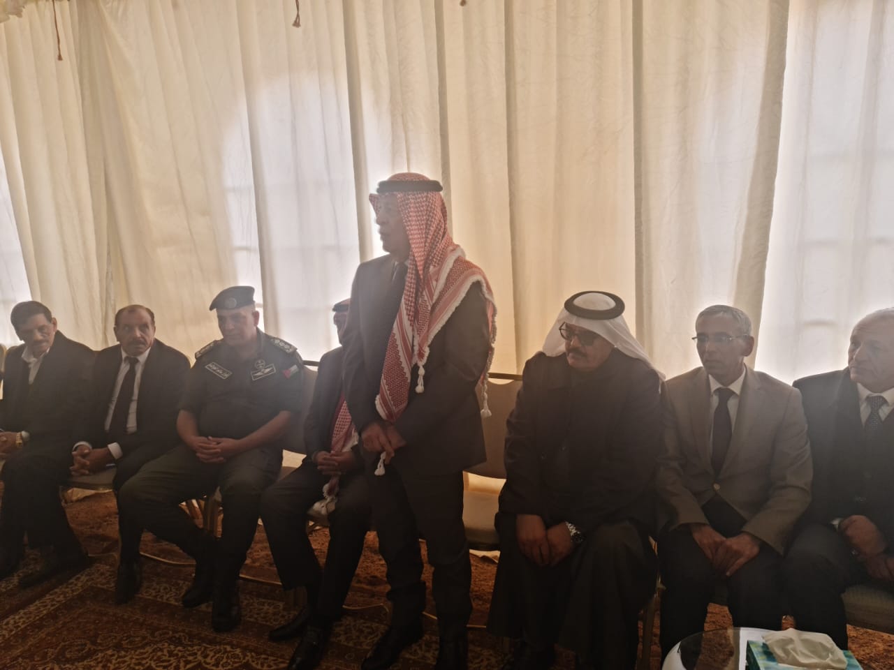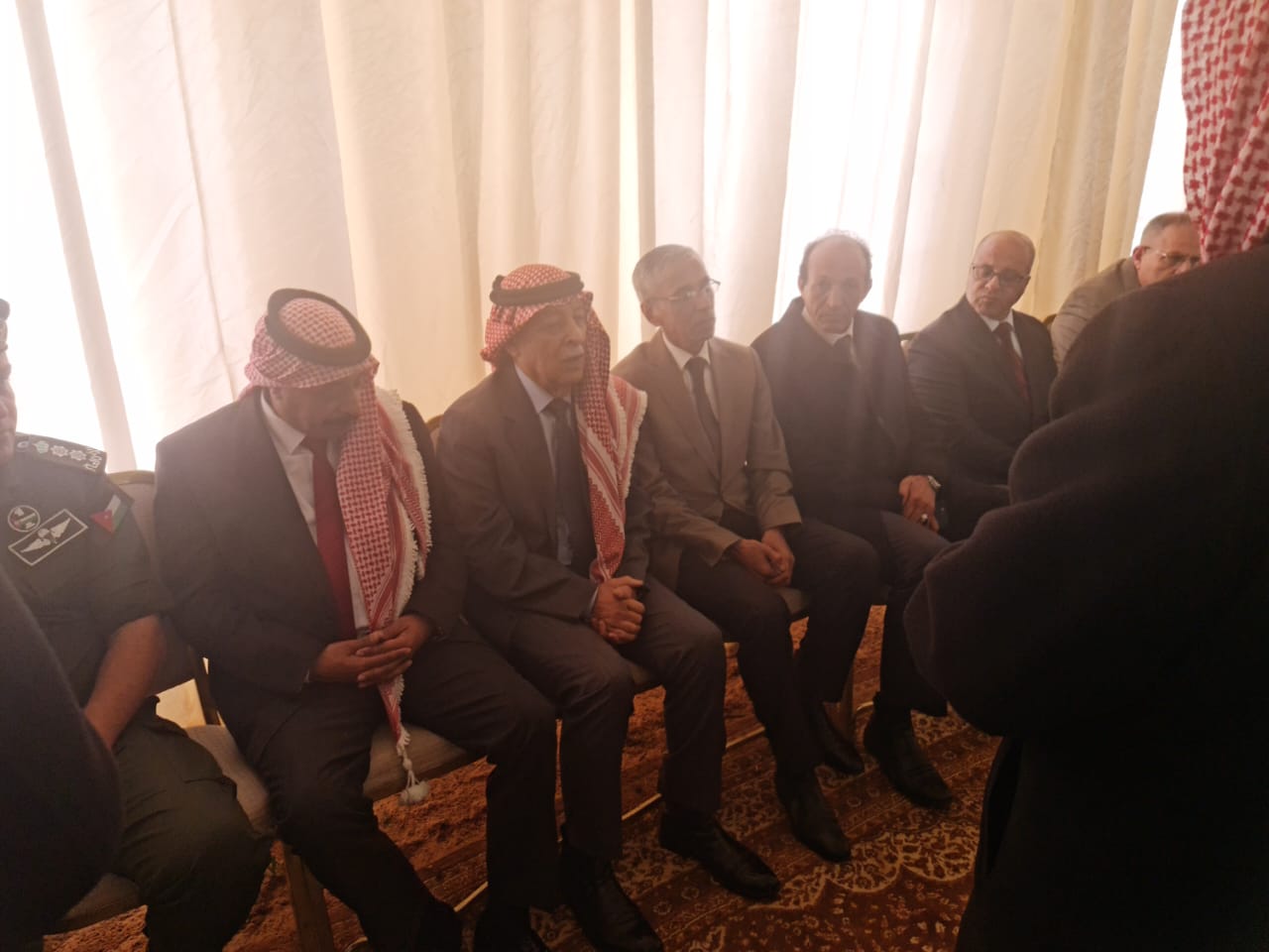 عمان- مندوبا عن جلالة الملك عبدالله الثاني، قدم رئيس الديوان الملكي الهاشمي يوسف حسن العيسوي واجب العزاء بالمرحوم القاضي فارس الماضي في منطقة الدفيانة محافظة المفرق.
