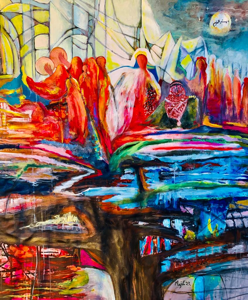 هذا و تشارك الفنانة التشكيلية مجد رمضان بلوحة خاصةً للمناسبة تحمل شعار المهرجان مهرجان جرش ” ويستمر الفرح