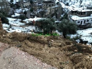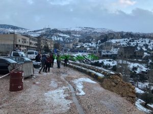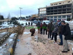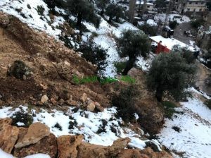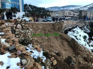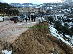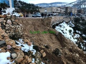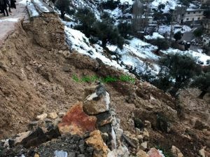 تسببت شدة جريان المياه بسبب التساقط المستمر للأمطار وبعد إذابة الثلوج بحصول إنهيارات على طريق عنجرة- عجلون مقابل صالات قصر القمة للافراح ، حيث نتج عن هذه الإنهيارات إنهيار سلسال حجري والأتربة والحجارة الموجودة تحت السلسال .
