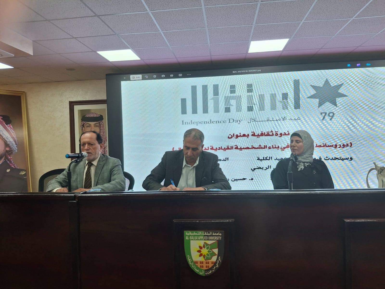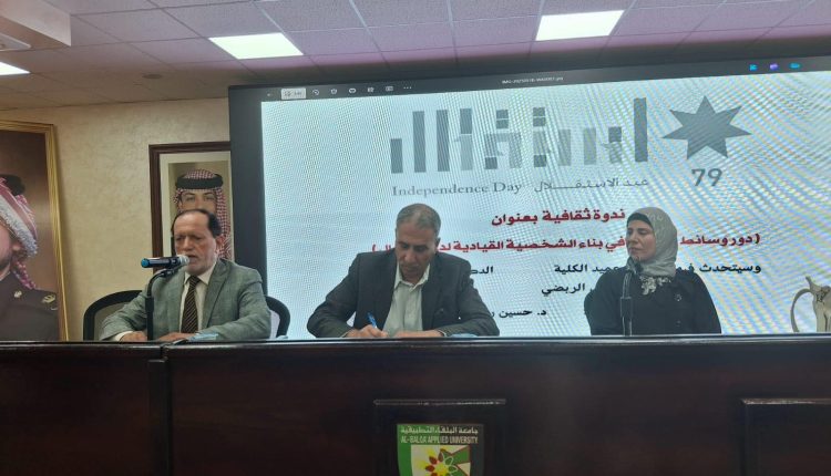 نظّمت كلية عجلون الجامعية / جامعة البلقاء التطبيقية ندوة ثقافية بعنوان: “دور وسائل التربية في بناء الشخصية القيادية لدى الأجيال”، ضمن فعالياتها الهادفة إلى ترسيخ القيم التربوية والانتماء الوطني. شارك في الندوة عميد الكلية الأستاذ الدكتور وائل الربضي والدكتورة آمنة شويات، وأدارها الدكتور حسين ربابعة.