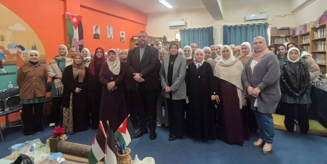 وحضور مديرة المدرسة شيرين المومني وعدد من المعلمات واللجنة الاعلامية بالمدرسة .