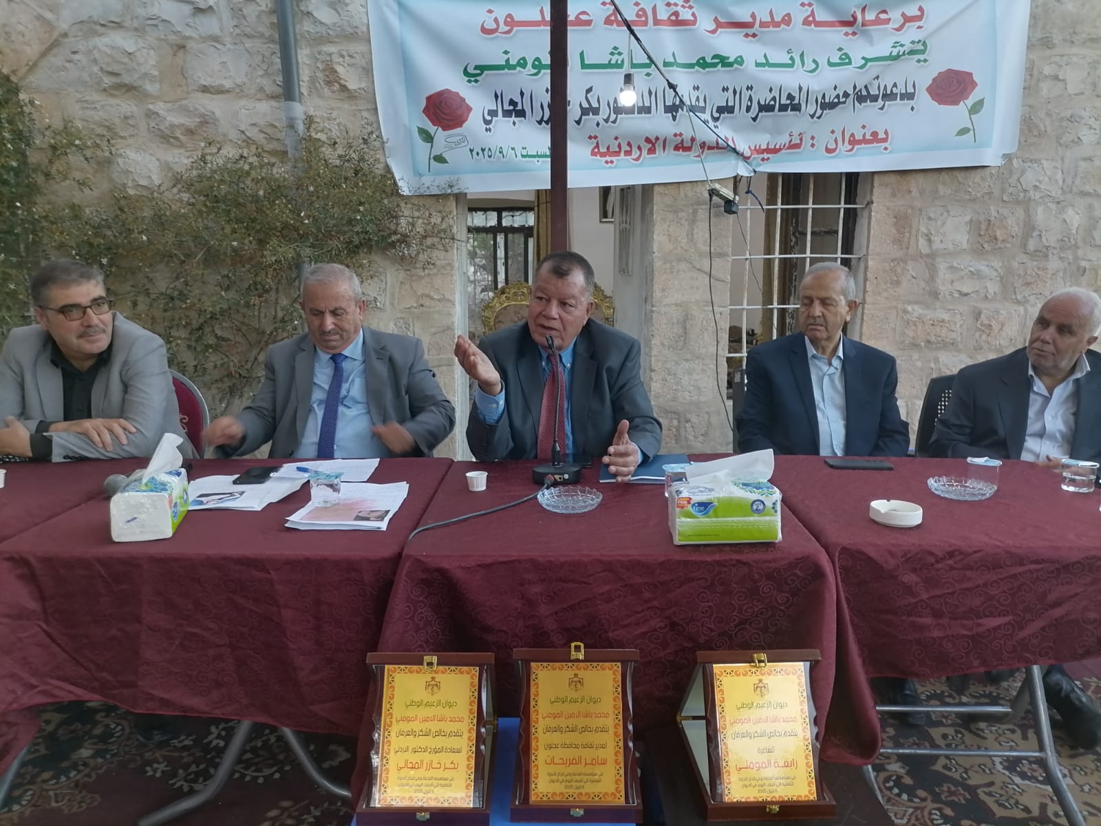 نظم نجل الشيخ المرحوم الشيخ محمد باشا الأمين المومني رائد المومني ندوة حول تأسيس الدولة الأردنية برعاية مدير الثقافة سامر الفريحات تحدث فيها مدير التوثيق في الديوان الملكي سابقا الدكتور بكر خازر المجالي ومدير الثقافة سامر الفريحات ورئيس منتدى صخره الثقافي المحافظ المتقاعد نايف المومني والاكاديمي الدكتور في جامعة جرش الدكتور على الرشيد المومني واللواء المتقاعد علي المومني والشاعره رابعه المومني بحضور العين السابق المهندس سميح المومني وفاعليات مجتمعية ونسائية .