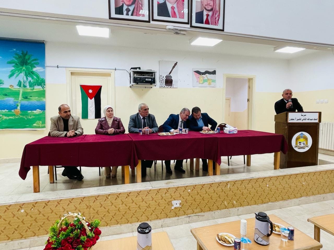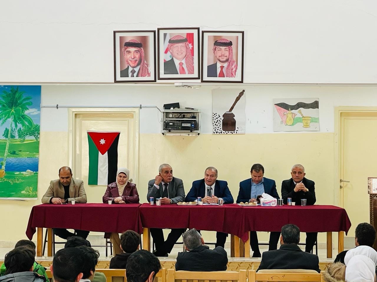 وثمن الشرع الجهود التي تقدمها إدارة المدرسة شاكرا الهيئتين الإدارية والتدريسية على دورها في إبراز القضايا الملحة وتثقيف المجتمع متمنيا للجميع التوفيق والازدهار في ظل الراية الهاشمية داعيا الله عزوجل أن يحفظ بلدنا الأردن قيادة وشعبا ليبقى حرا عزيزا.