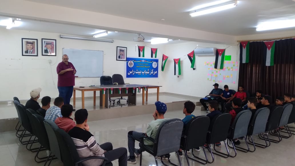 نظم مركز شباب بيت راس، اليوم الثلاثاء، ندوة بعنوان “كيفية مسك القلم (قواعد كتابة اللغة العربية)”، بمشاركة 19 يافعاً من منتسبي المركز للفئة العمرية 12–14 عاماً.