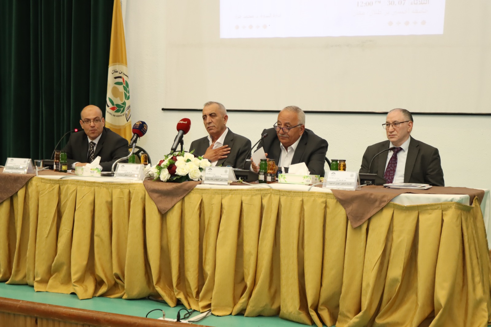 ضمن فعاليات مهرجان جرش للثقافة والفنون أقيمت في جامعة الحسين بن طلال وبحضور رئيسها الأستاذ الدكتور عاطف الخرابشة ندوة نقاشية بعنوان “الملك، وصفقة القرن” وذلك على مدرج خير الدين المعاني في الجامعة، وبمشاركة كل من سعادة العين المهندس خالد رمضان، وسعادة العين مصطفى الرواشدة، وسعادة الأستاذ الدكتور حسن الدعجة، ومدير الندوة الدكتور محمد جرار.