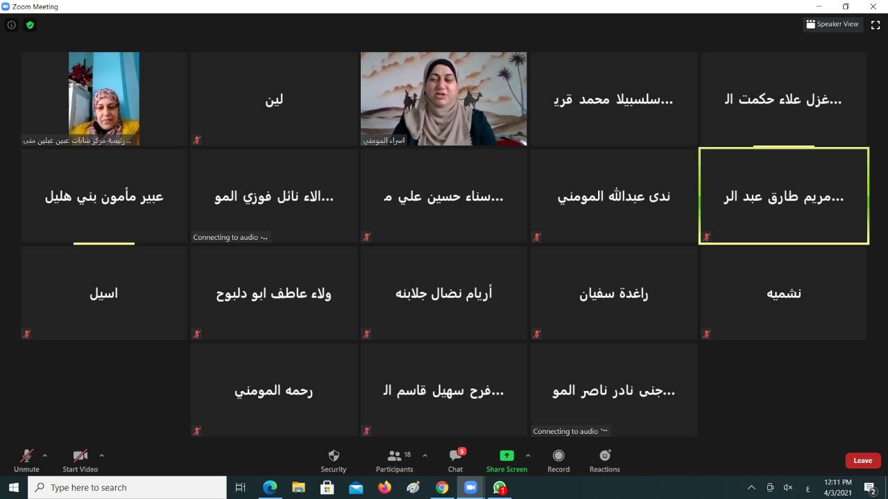 كما نفذ مركز شابات عبين عبلين ورشة عمل بعنوان ” إضاءات على المواهب الإبداعية ” بمشاركة 20 شابة عبر تطبيق زووم حيث