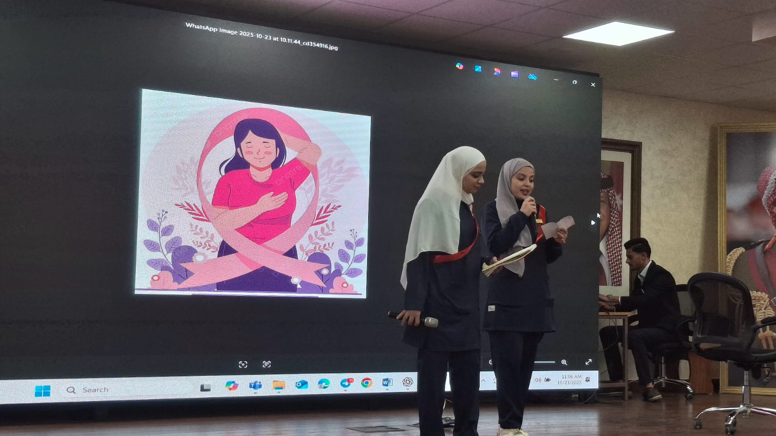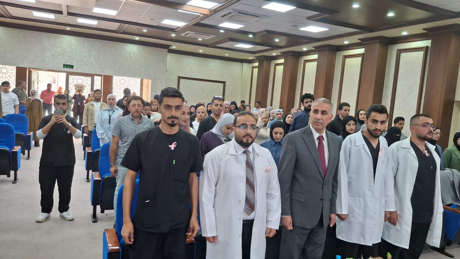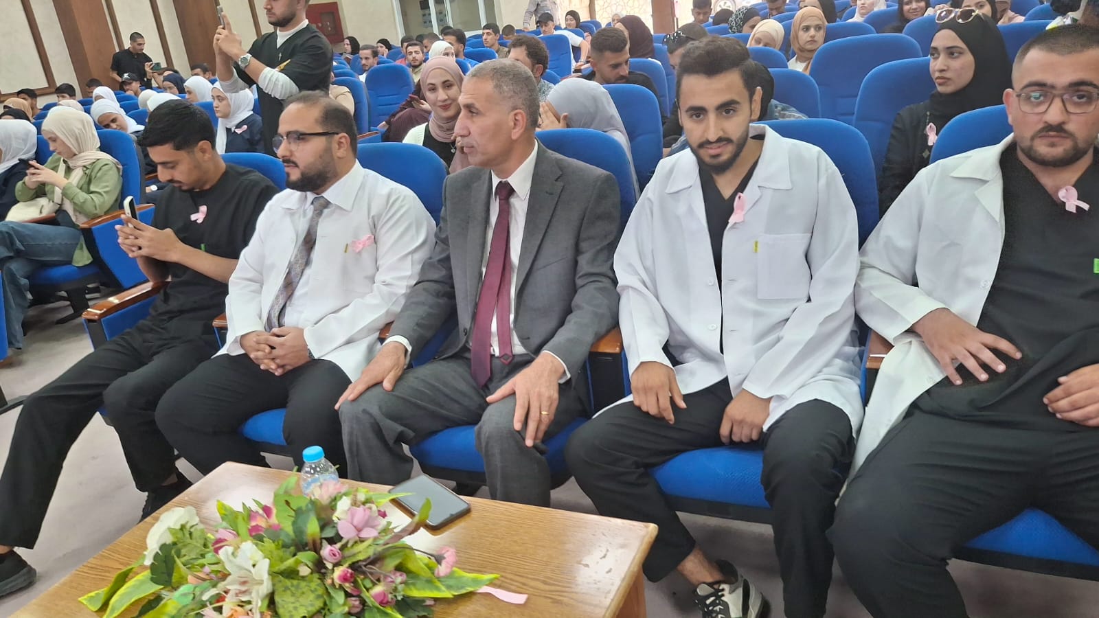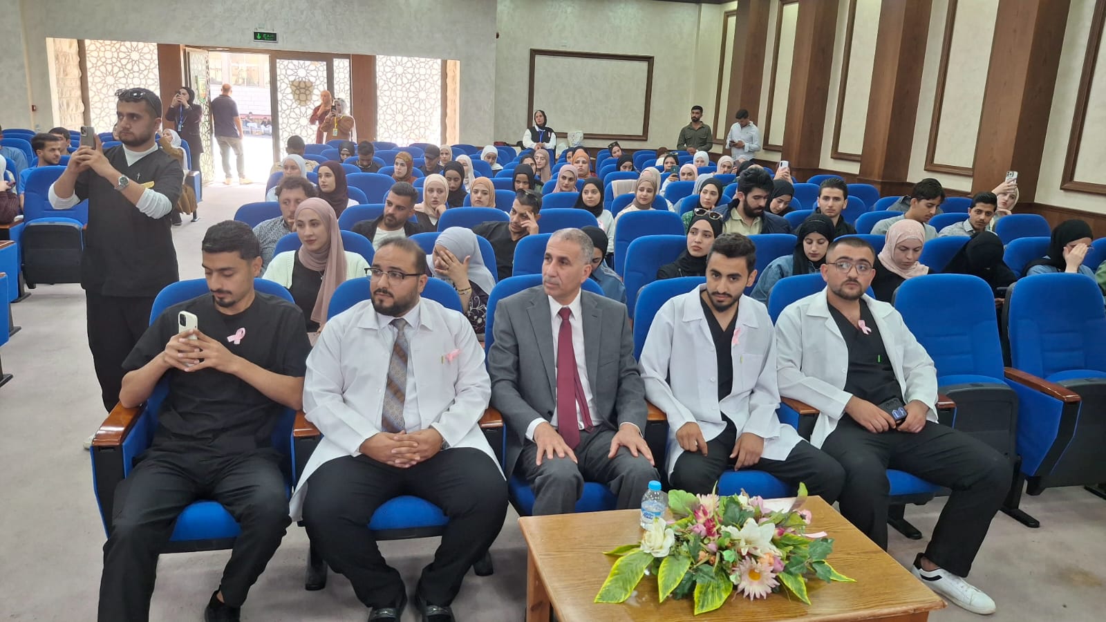 كما قدم طلبة تخصص التمريض مجموعة من الفقرات التوعوية والعروض التوضيحية التي ركزت على كيفية إجراء الفحص الذاتي للثدي وأهمية المتابعة الطبية الدورية، إضافة إلى عرض قصص إنسانية ملهمة لسيدات استطعن التغلب على المرض بالعزيمة والإيمان والعلاج المبكر.