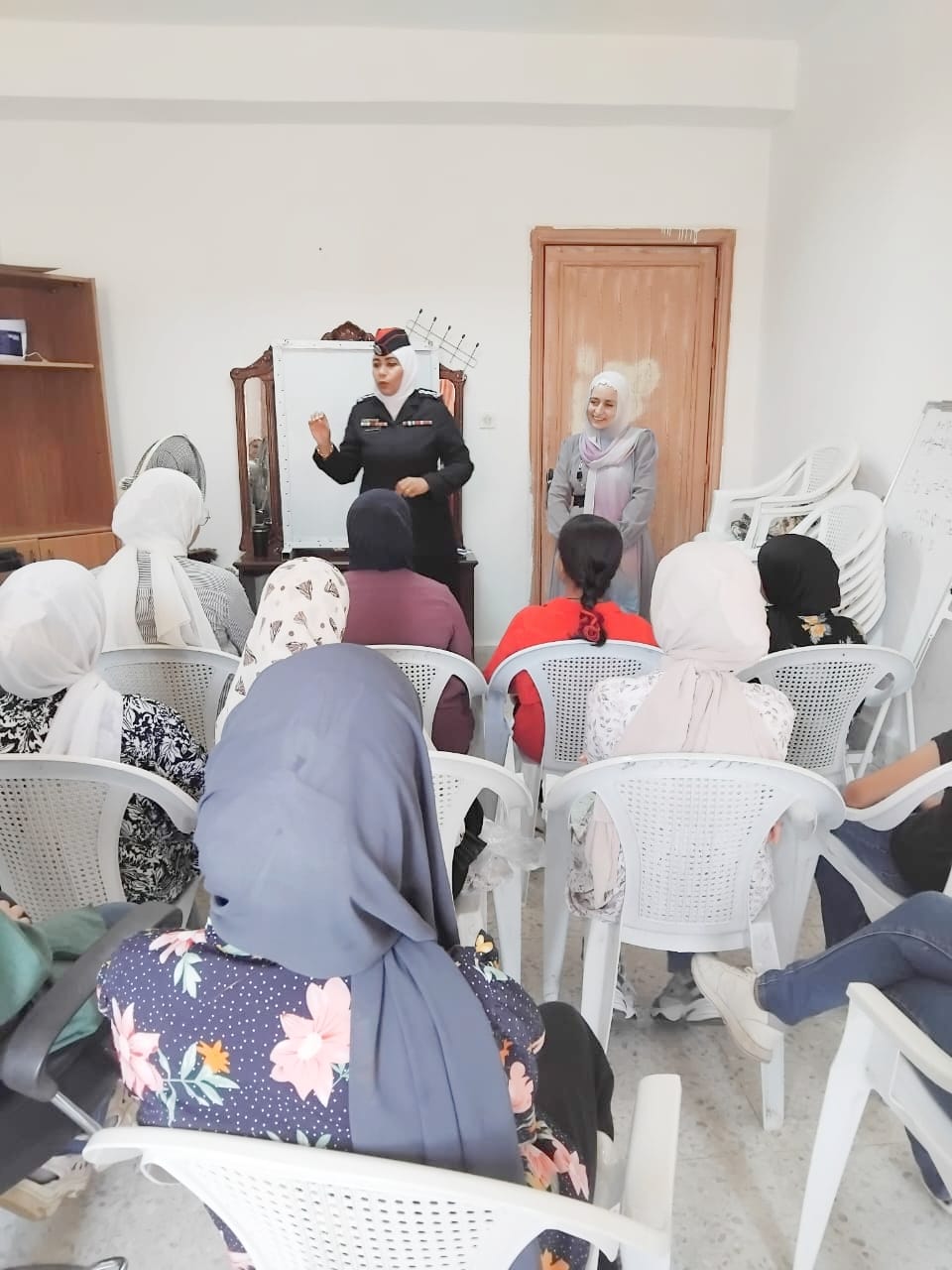 تحدثت النقيب فاطمة عمايرية عن مركز السلم المجتمعي ودوره بالمجتمع والخدمات المقدمة من قبل المركز وكما تتطرقت إلى الحديث عن الإستخدام الآمن لمواقع التواصل الإجتماعي و مواجهة التجنيد الإلكتروني ورفع درجة الوعي لدى المشاركات ، من خلال التركيز على المخزون الفكري والمعرفي لدى المشاركات.