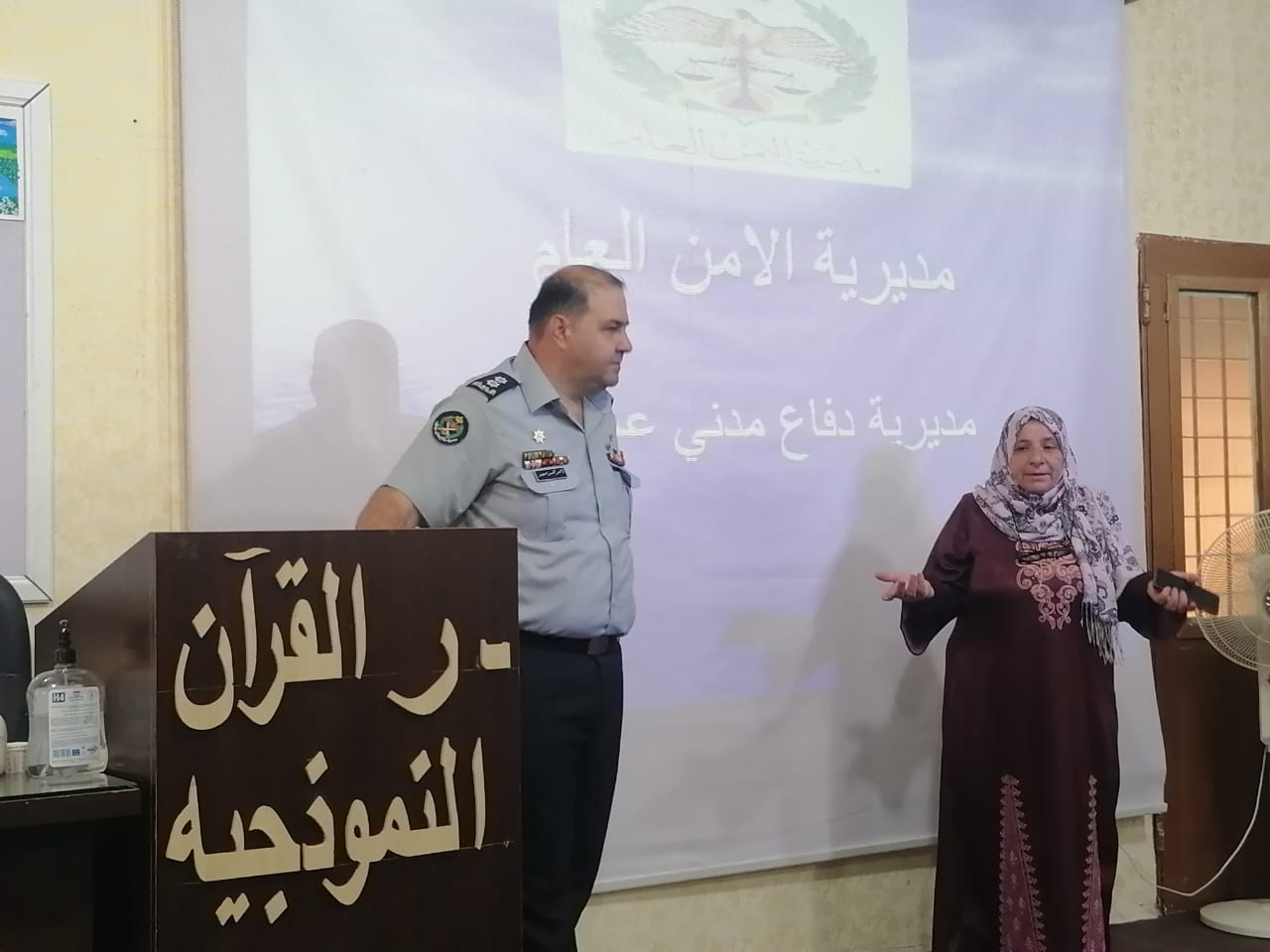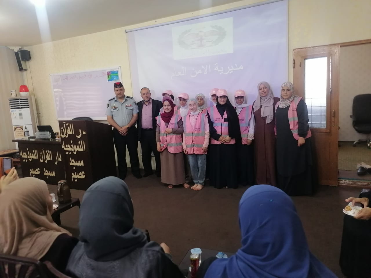 تحت رعاية رئيسة قسم الشؤون النسائية في محافظة عجلون السيدة بثينه المومني وبالتشاركية مع مديرية الدفاع المدني أُقيمت  في دار القرآن الكريم في مسجد عصيم والمركز الصيفي ورشة بعنوان( السلامة العامة)  و( مكافحة الحرائق) والتي  شارك فيها  ٧٠ طالبة وسيدة.