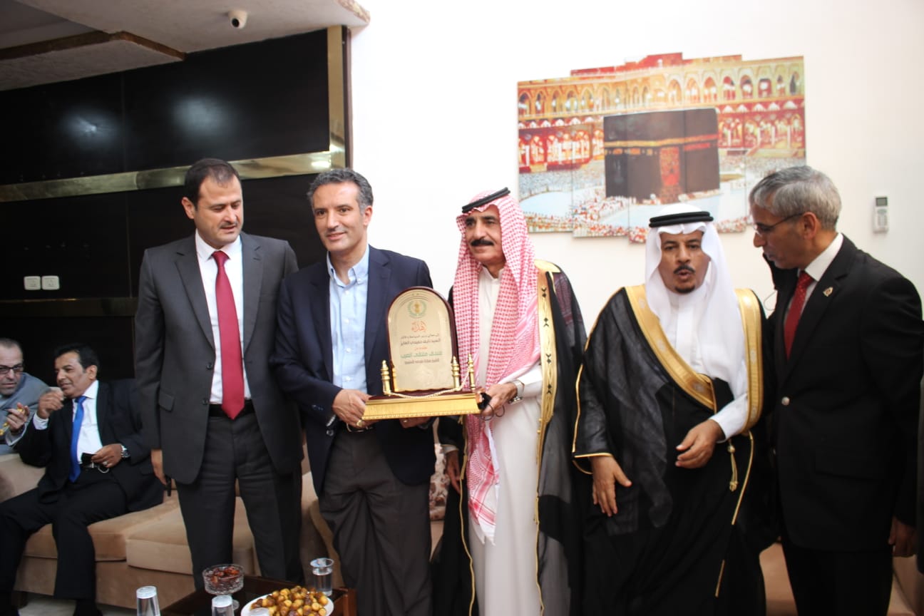 وفي المحطة الثالثة للزيارة افتتح الفايز ” فندق ملتقى العرب” لمستثمر سعودي في منطقة عبين ويتكون من 12 جناحا فندقيا وقاعات للاجتماعات والمحاضرات ، والتقى الفايز المستثمر السعودي الشيخ مبارك العتيبي ” ابو مشعل” بحضور المحافظ النجادا والنائب الدكتور بلال المومني ورئيس بلدية الجنيد السابق فخري المومني ، واستمع لشرح من الشيخ العتيبي عن مراحل التطوير للمشروع ضمن المرحله الثانية وتشمل إضافة طابق ثالث بسعة 20 غرفة فندقية والمرحلة الثالثه الطابق الرابع وتشمل إضافة 18 شقة فندقية خلال هذا العام بإذن الله .