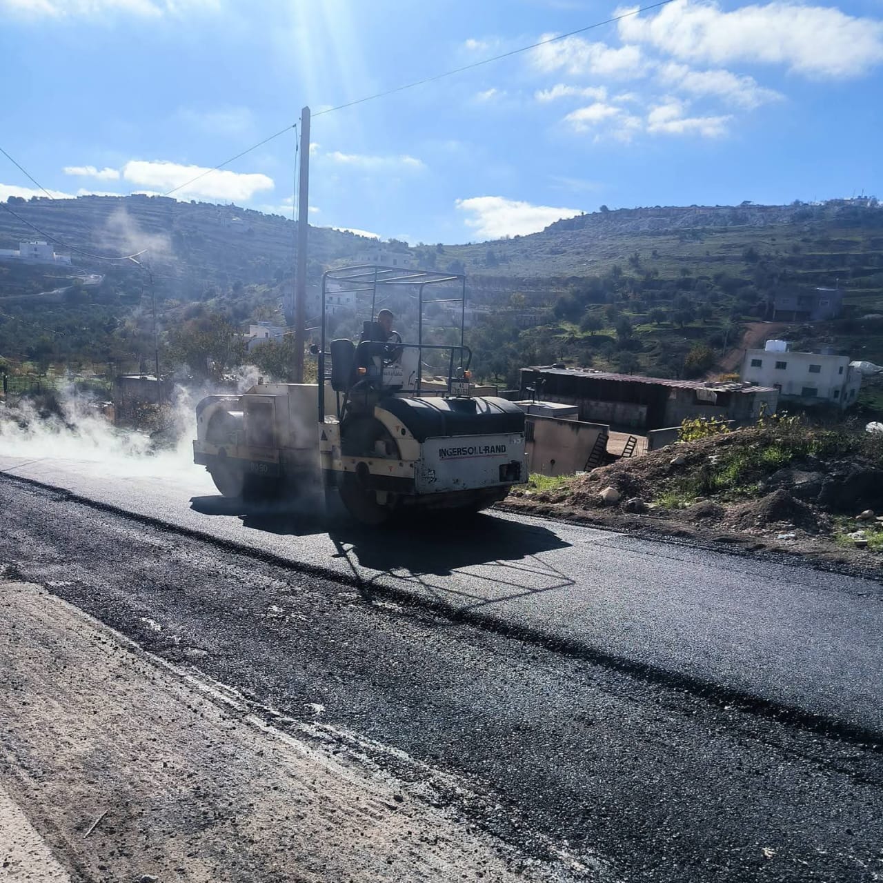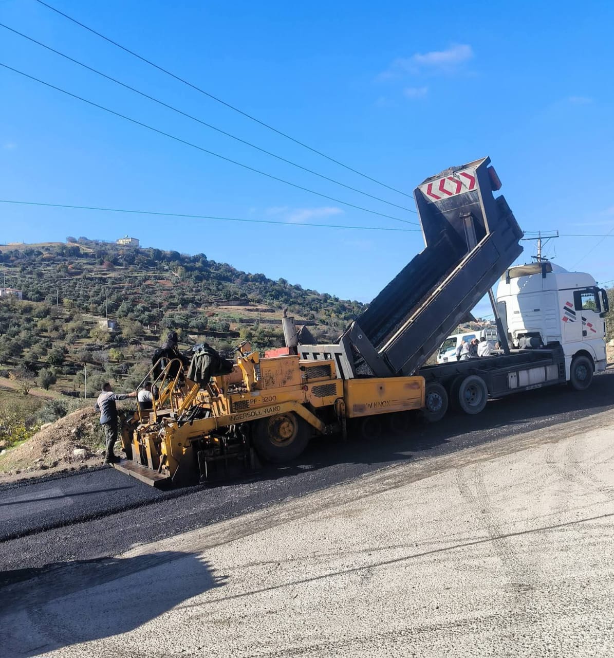 باشرت بتعبيد الشوارع في مناطق صخره وعبين عبلين بخلطة إسفلتية بدعم من مجلس المحافظة موازنة 2025 .