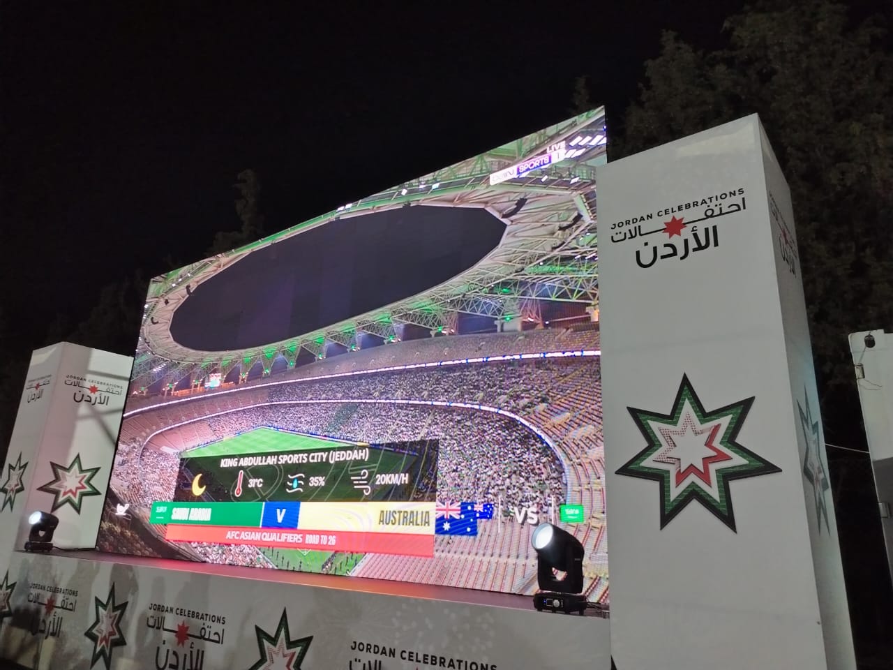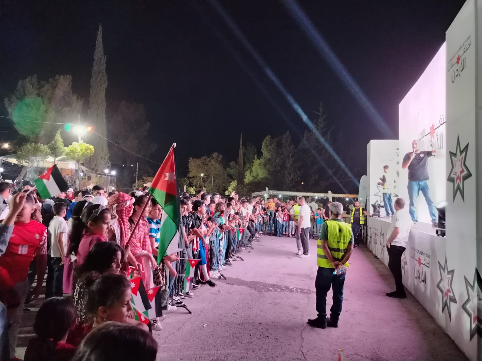 عجلون الإخبارية: احتفلت الفعاليات المختلفة في محافظة عجلون مساء اليوم الثلاثاء بعيد الجلوس الملكي ويوم الجيش وذكرى انطلاقة الثورة العربية الكبرى  وبتأهل منتخبنا الوطني الى نهائيات كأس العالم  ،حيث تقدم المشاركين في الحفل الذي أقيم في ساحة معسكرات الحسين للشباب  محافظ عجلون نايف الهدايات  ومدير شرطة عجلون العميد وصفي العزام  وعدد من نواب المحافظة ومدراء الدوائر الرسمية والأمنية وفعاليات شعبية ورسمية وشبابية وثقافية  إمتلئت فيهم  ساحة المعسكرات .