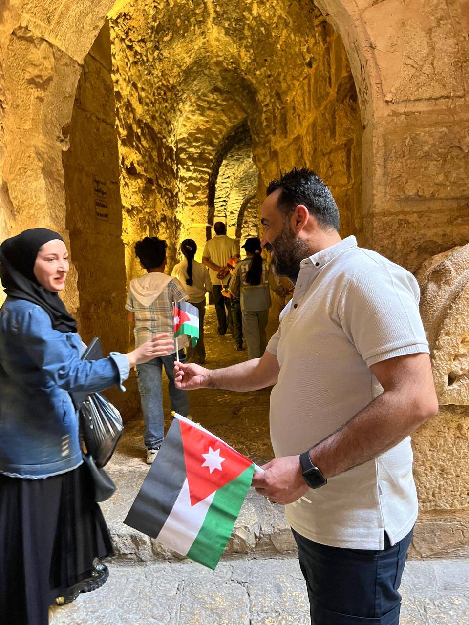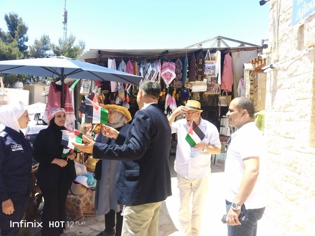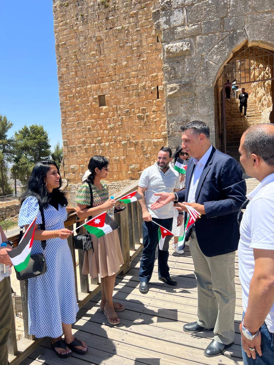 وخلال الزيارة التي رافقه فيها أيضا مدير سياحة عجلون فراس خطاطبه قام الأمين العام لوزارة السياحه بتوزيع الأعلام على زوار المواقع احتفالا بعيد الاستقلال ال 79.