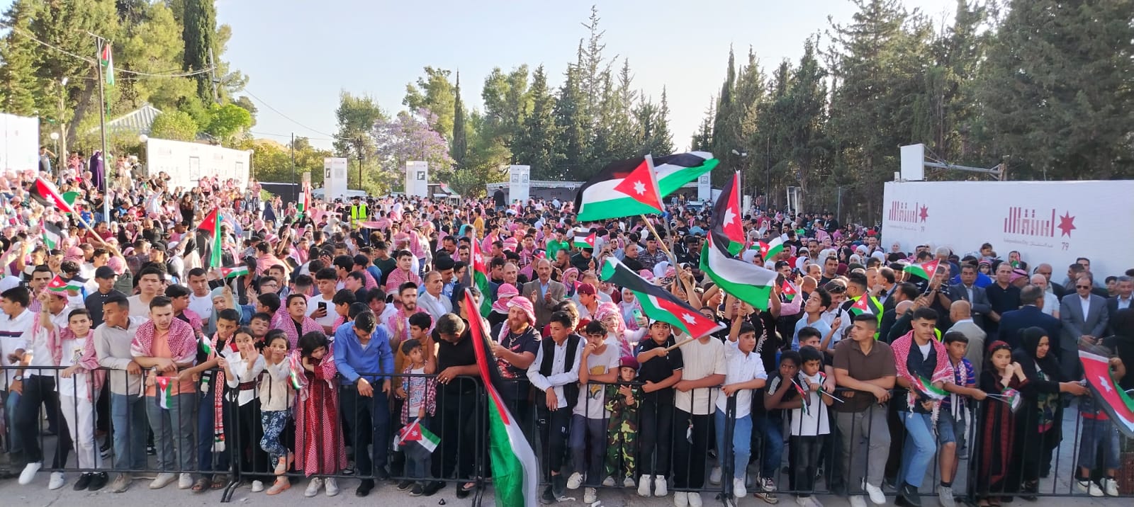 يتقدمهم محافظ عجلون .آلاف العجلونيون يشاركون بإحتفالات المحافظة بعيد الإستقلال بالاستقلال 79 .