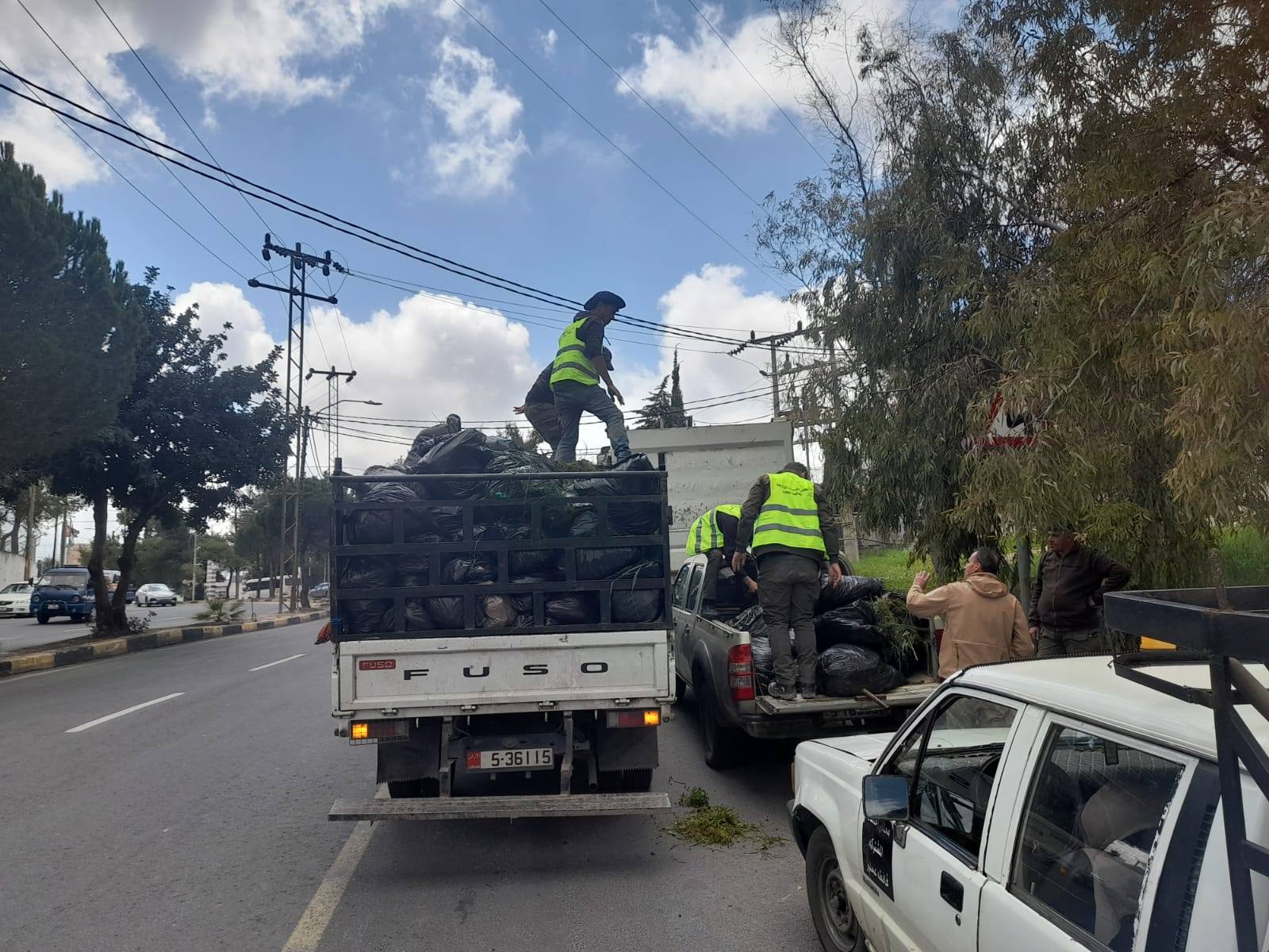 و فريق عمل على تنظيف شارع اربد عجلون تحديدا من كازية المناصير وصولا إلى البنك الإسلامي فرع عبين ، حيث تم جمع اكياس النفايات من كافة مواقع العمل ونقلها إلى المحطة التحويلية.