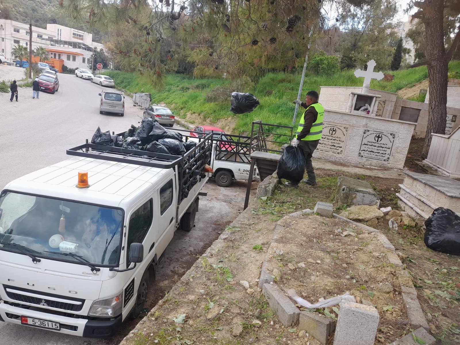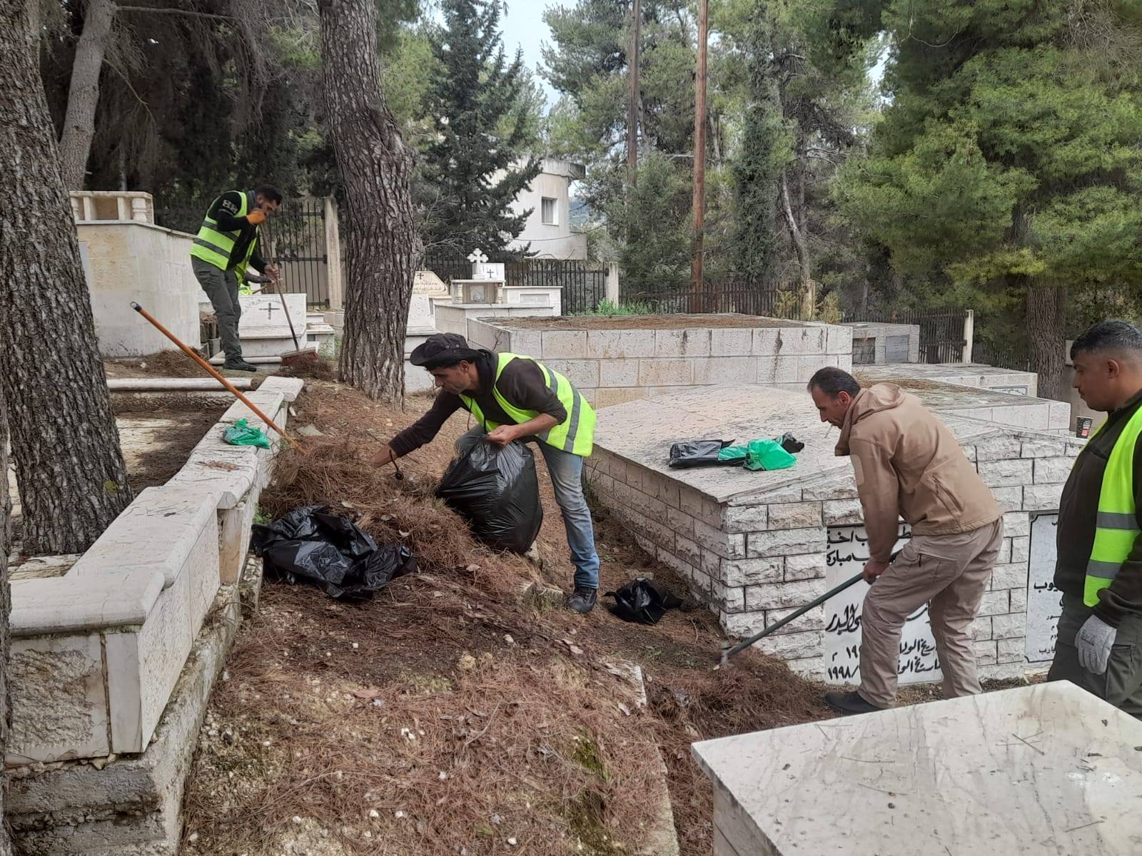 كوادر مجلس الخدمات المشتركة تنفذ حملة نظافة شاملة للمقابر المسيحية في عجلون