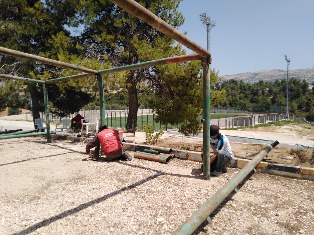 وقال مشرف المجمع الشبابي محمد الزعارير إن موظفي المجمع أخذوا على عاتقهم إجراء أعمال صيانة شاملة في المجمع وخاصة في مجال إزالة النفايات والأعشاب اليابسة وتقليم الأشجار والإستفادة من كافة المواسير والمواد التي كانت تعتبر تالفة وملقاه منذ عدة سنوات في أطراف المجمع .