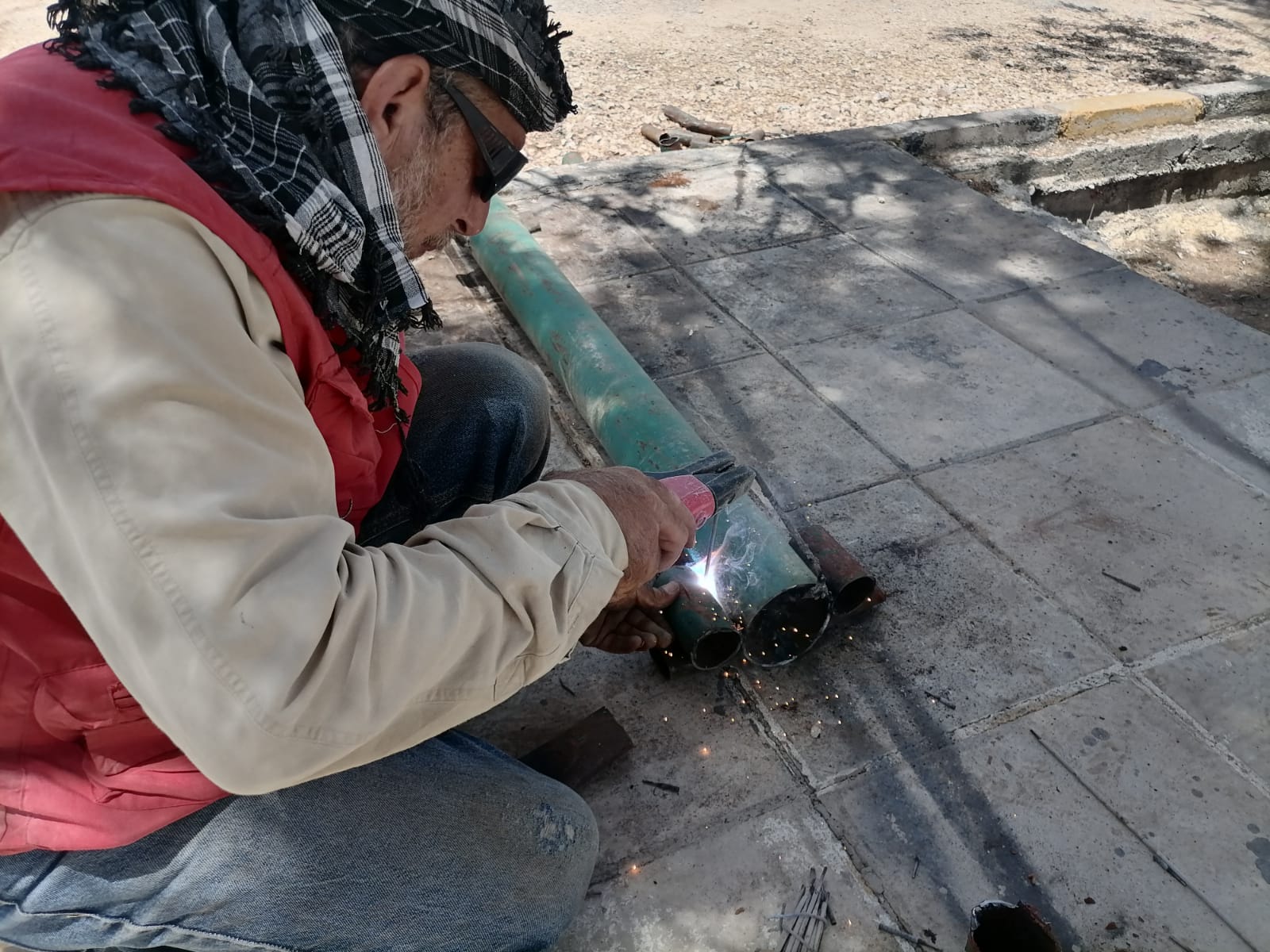 وأضاف الزعارير أنه وبجهود ذاتية وبإمكانات بسيطة متوفرة لدى الموظفين العاملين في المجمع فقد بدأ العمل للإستفادة من هذه المواد وخاصة في مجال بناء المظلات في أماكن مختلفة في المجمع الرياضي ، لافتا الى أنه سيتم الإستفادة قدر الإمكان من جميع المواد الموجودة في المجمع الرياضي ولن يتم إتلاف أي شىء من هذه المواد ، مؤكدا في الوقت نفسه أن لدى الموظفين ماكينات لحام وكافة العدد المطلوبة للعمل ، مشيرا الى أن الموظفين يعملون بروح الفريق الواحد وبطموح كبير لإعادة الألق للمجمع .