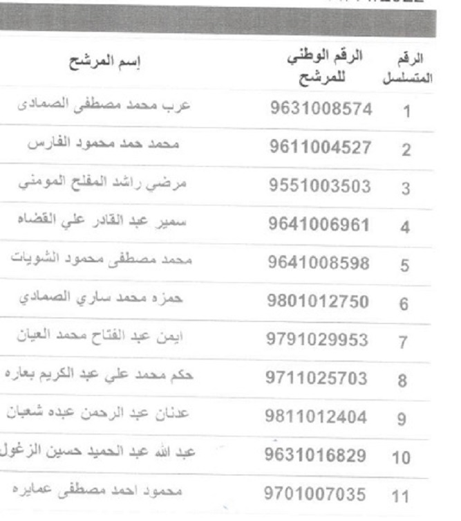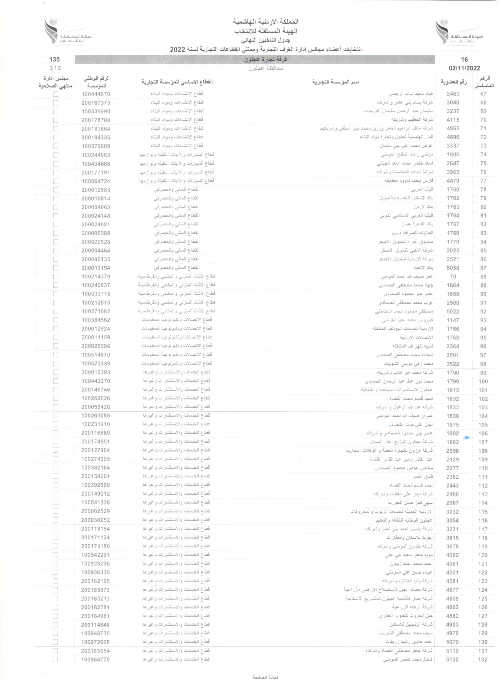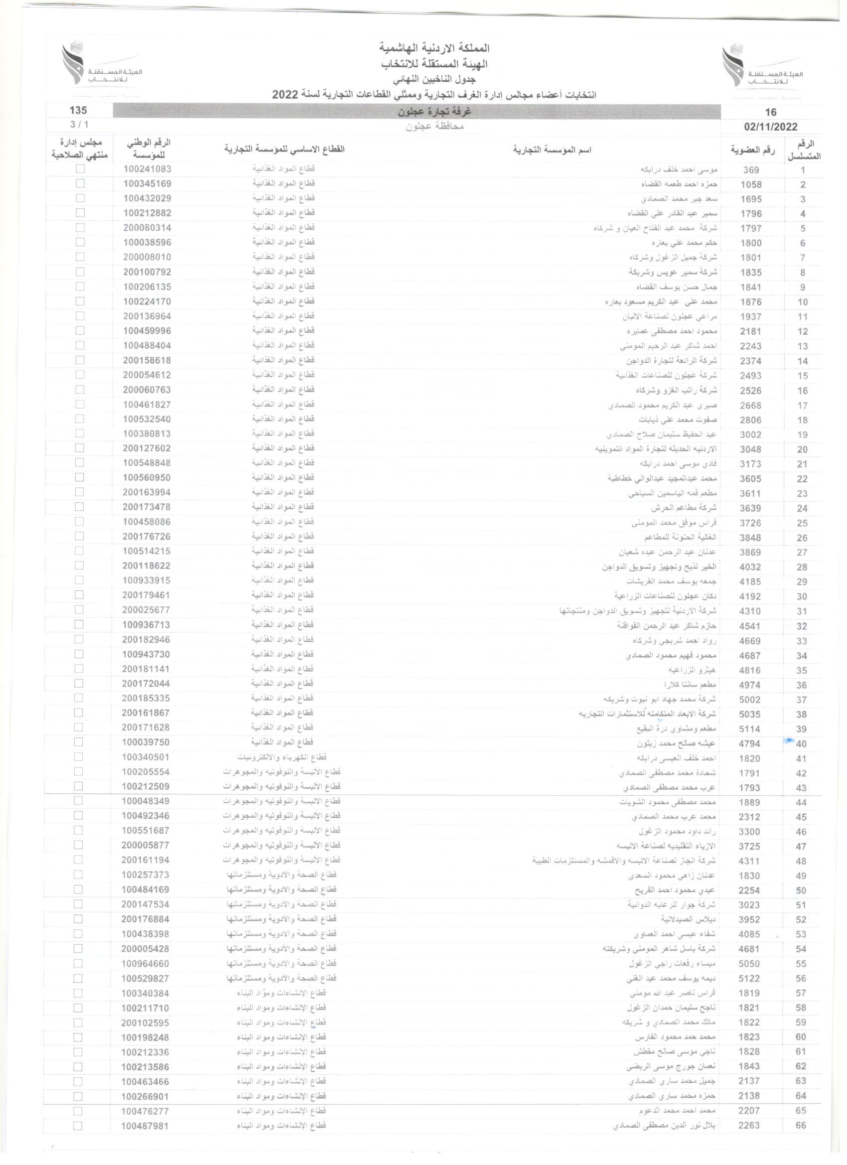 وتاليا أسماء أعضاء الهيئة العامة لغرفة تجارة عجلون الذين يحق لهم الإنتخاب