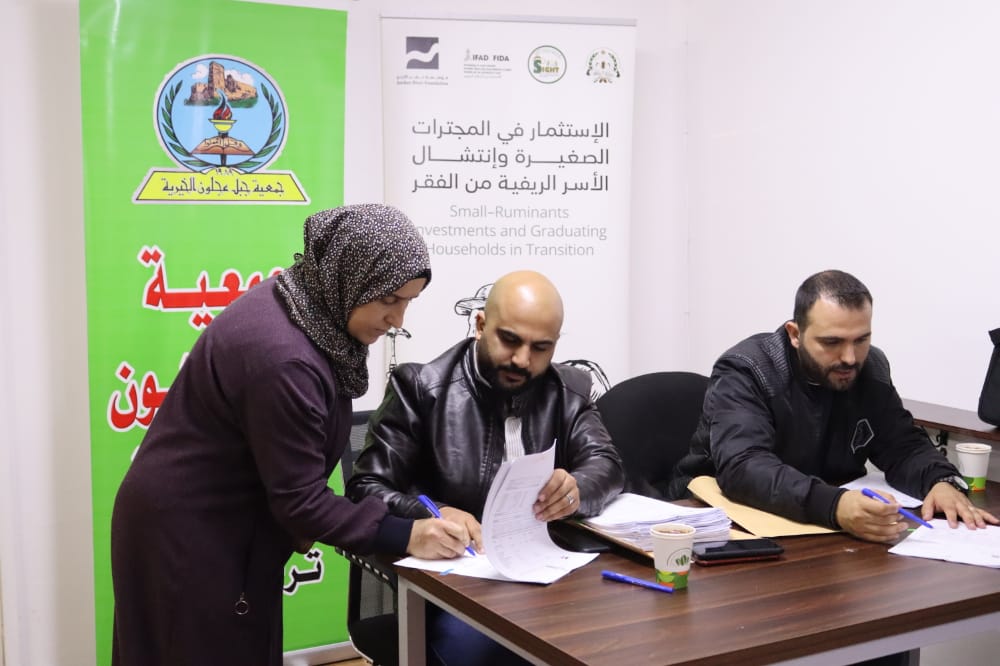 توقيع اتفاقيات ٣٨ مستفيد ضمن مشروع “الاستثمار في المجترات الصغيرة وانتشال الأسر الريفية من الفقر” في جمعية جبل عجلون الخيرية