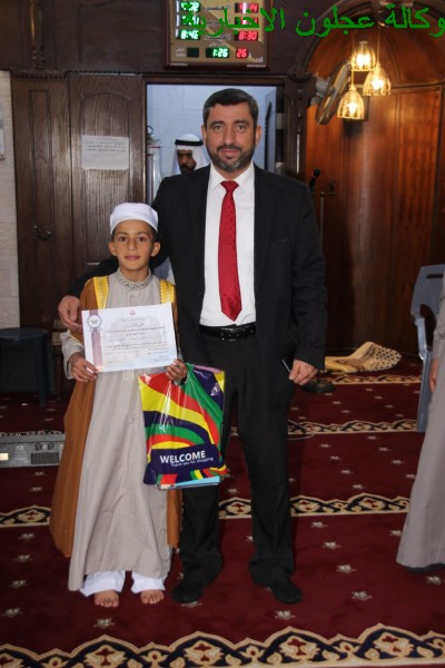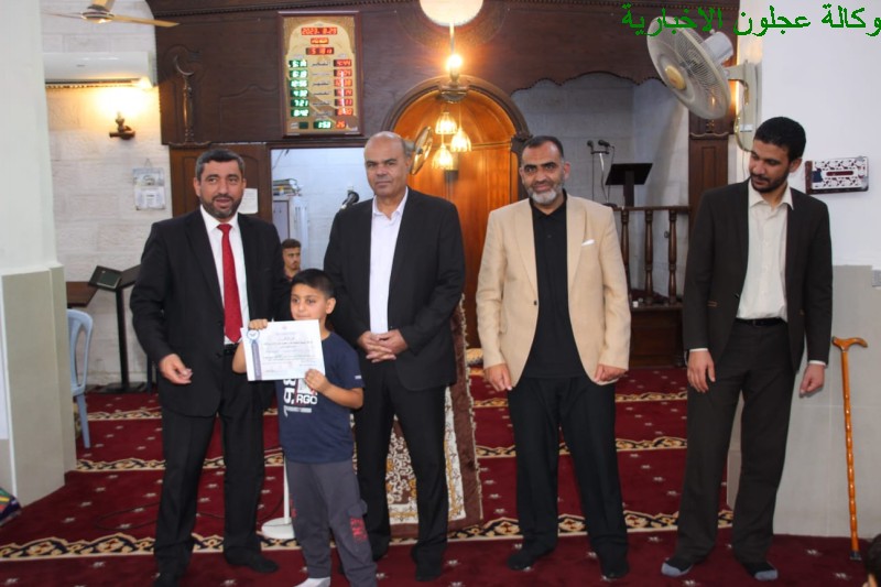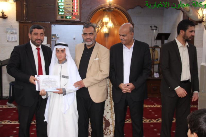 وفي ختام الحفل قام مدير الأوقاف بحضور مساعد المدير الدكتور عبدالله الشقاح وعضو مجلس المحافظة منذر الزغول والشيخ عبدالله الهزايمة وإمام المسجد بتوزيع الشهادات والجوائز على الطلبة.