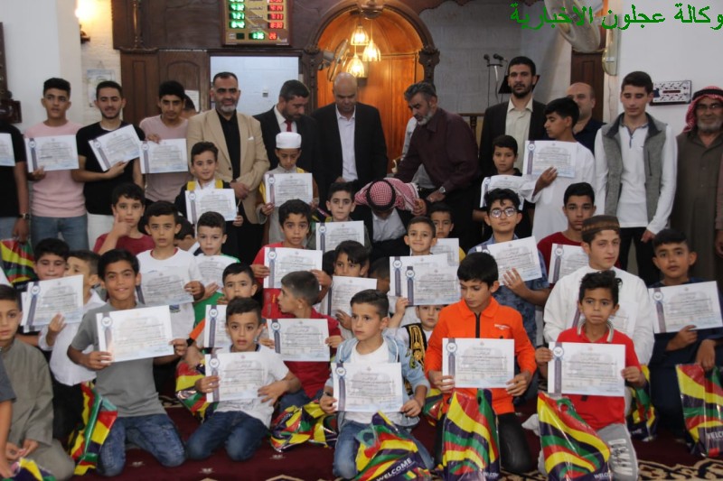 رعى مدير مديرية أوقاف محافظة عجلون الدكتور أحمد محمود الصمادي حفل تخرج طلاب المركز الصيفي في مسجد المثنى بن حارثة في عنجرة والبالغ عددهم حوالي ال 100 طالب .