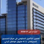 - إطلاق بطاقات التأمين الحكومي للعلاج في مركز الحسين للسرطان