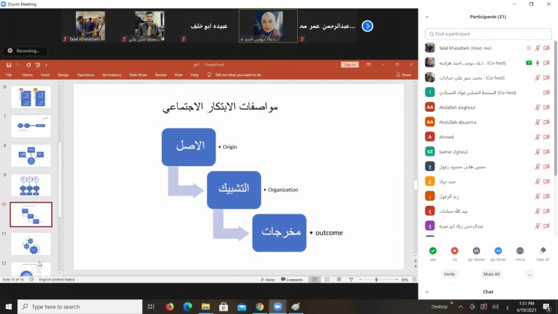 ونظم مركز شباب عنجرة ورشة تدريبية بعنوان ” برمجية power point” بمشاركة 20 شابا عبر تطبيق زووم