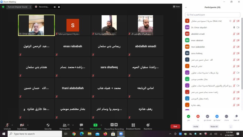 نفذت مديرية شباب عجلون لقاءًا حوارياً بمناسبة مئوية الدولة الأردنية بمشاركة 20 شاباً عبر تطبيق زووم