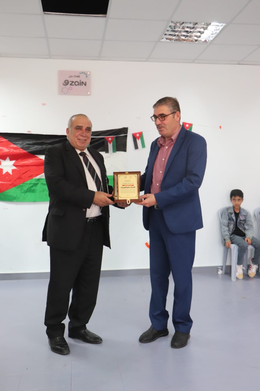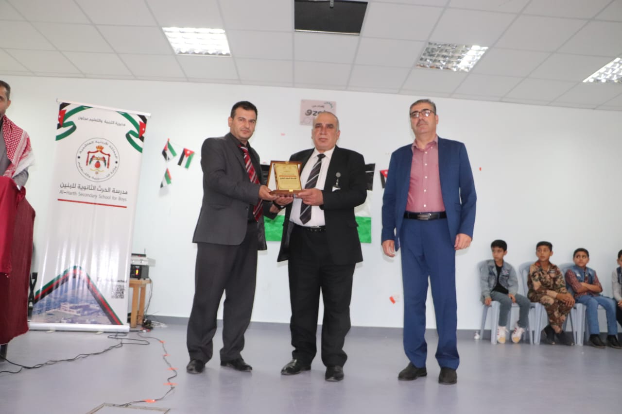 وفي نهاية الحفل كرم الشرع كلا من مدير المدرسة يونس القضاة ومدير الثقافة لتعاونه ودعمه.